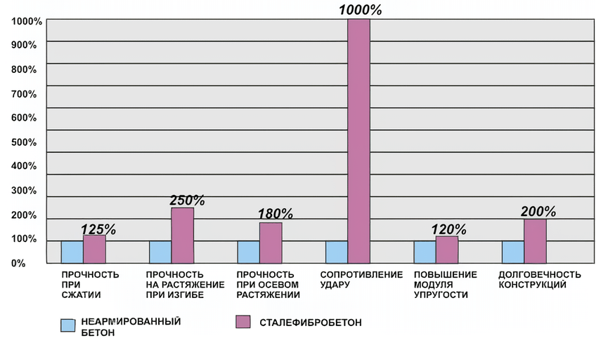 Это неполный перечень технических преимуществ, на которые можно рассчитывать при устройстве пола из сталефибробетона, одного из наиболее продвинутых композитных стройматериалов последних десятилетий.